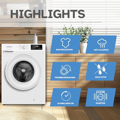 Heinrich´s Waschmaschine, 7kg, 15 Programme, 1400 U/min., Aqua-Stop, LED-Display, inkl. Timer, mit Kindersicherung, langlebiger Inverter Motor, Energieeffizienzklasse A, weiß