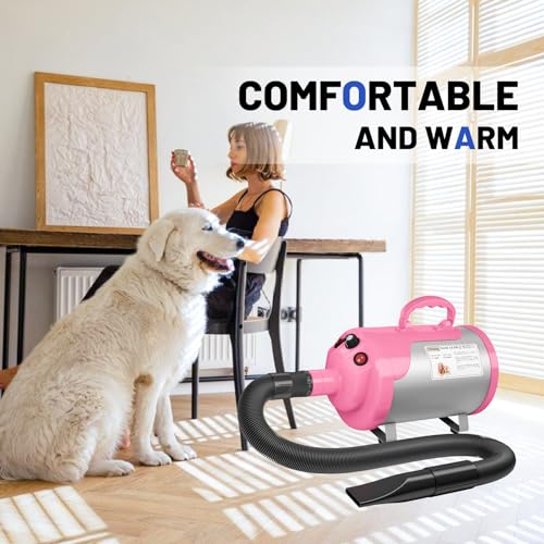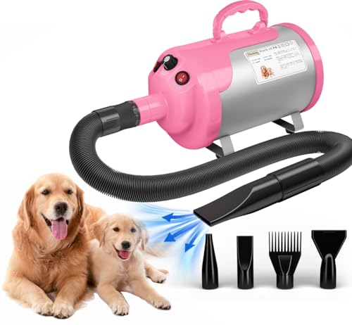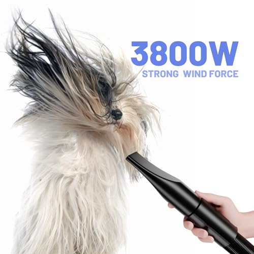 Hundefön Blower Sehr Leise 5.2 PS / 3800W Motor Einstellbare Geschwindigkeit, Hundepflege-Trockner-Gebläse mit 4 verschiedenen Düsen elastischem Schlauch