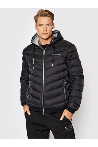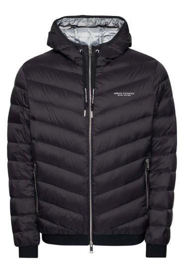 Additional Information: A|X ARMANI EXCHANGE Herren Steppjacke mit Kapuze und Reißverschluss, Milano/New York Logo Jacke, Schwarz/Melange Grau B, X-Large