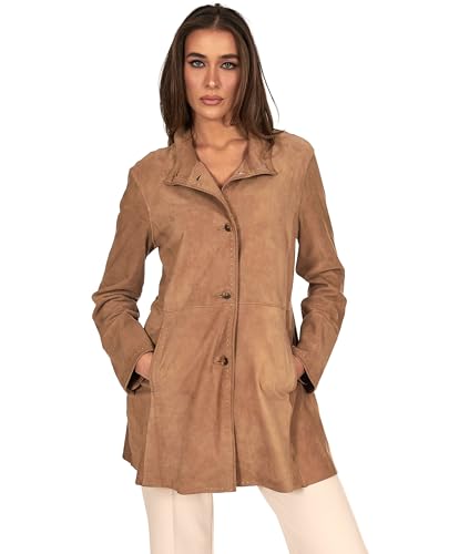 • ✅ Damenmantel aus 100% Lammleder, Das vorgeschlagene CORA-Modell besteht aus: 2 Seitentaschen, hoher kragen, lange Ärmel, Knopfverschluss, normale Passform. Frühling. Unser Model ist 1,75 m groß und trägt die Größe S. Für diesen Jackenstil empfehlen wir die üblicherweise getragene Größe.