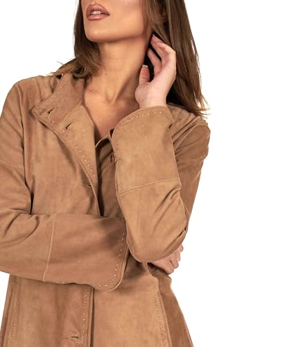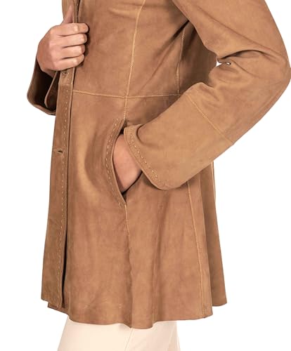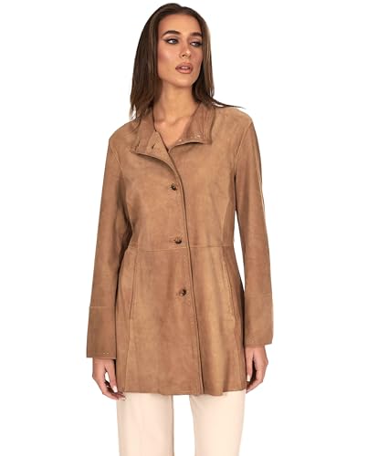 D’Arienzo Damen Wildledermantel Beige Jacke Ungefüttert Echtleder Lammleder Cora