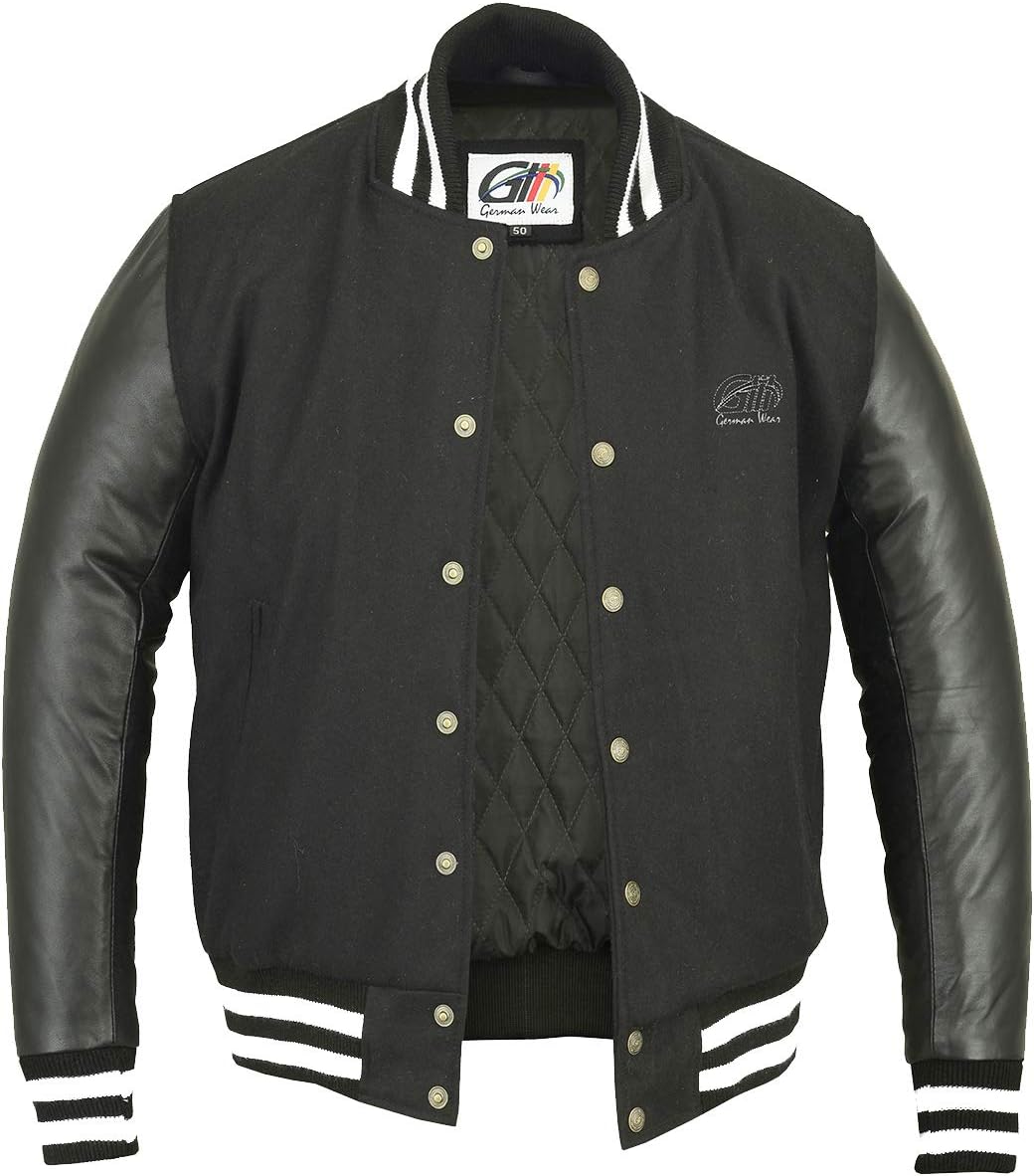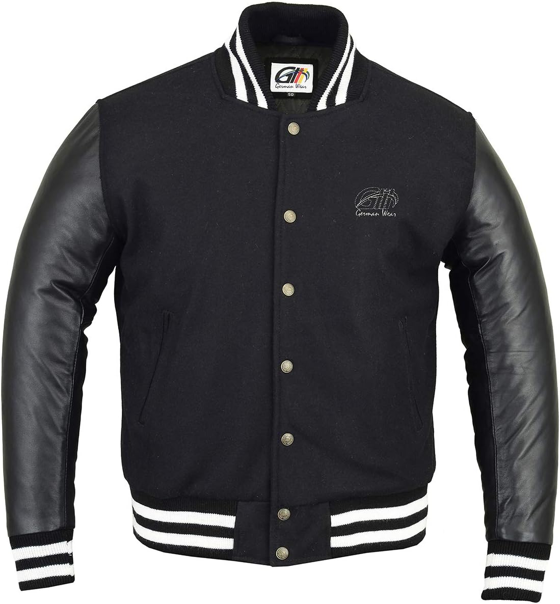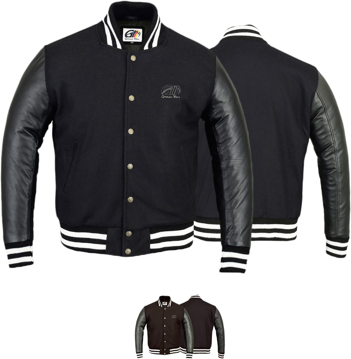 German Wear Premium Leather College Jacket – Vintage Varsity Biker Style with Wool Blouson & Leather Sleeves, Polyester Retro Design for Autumn and Winter