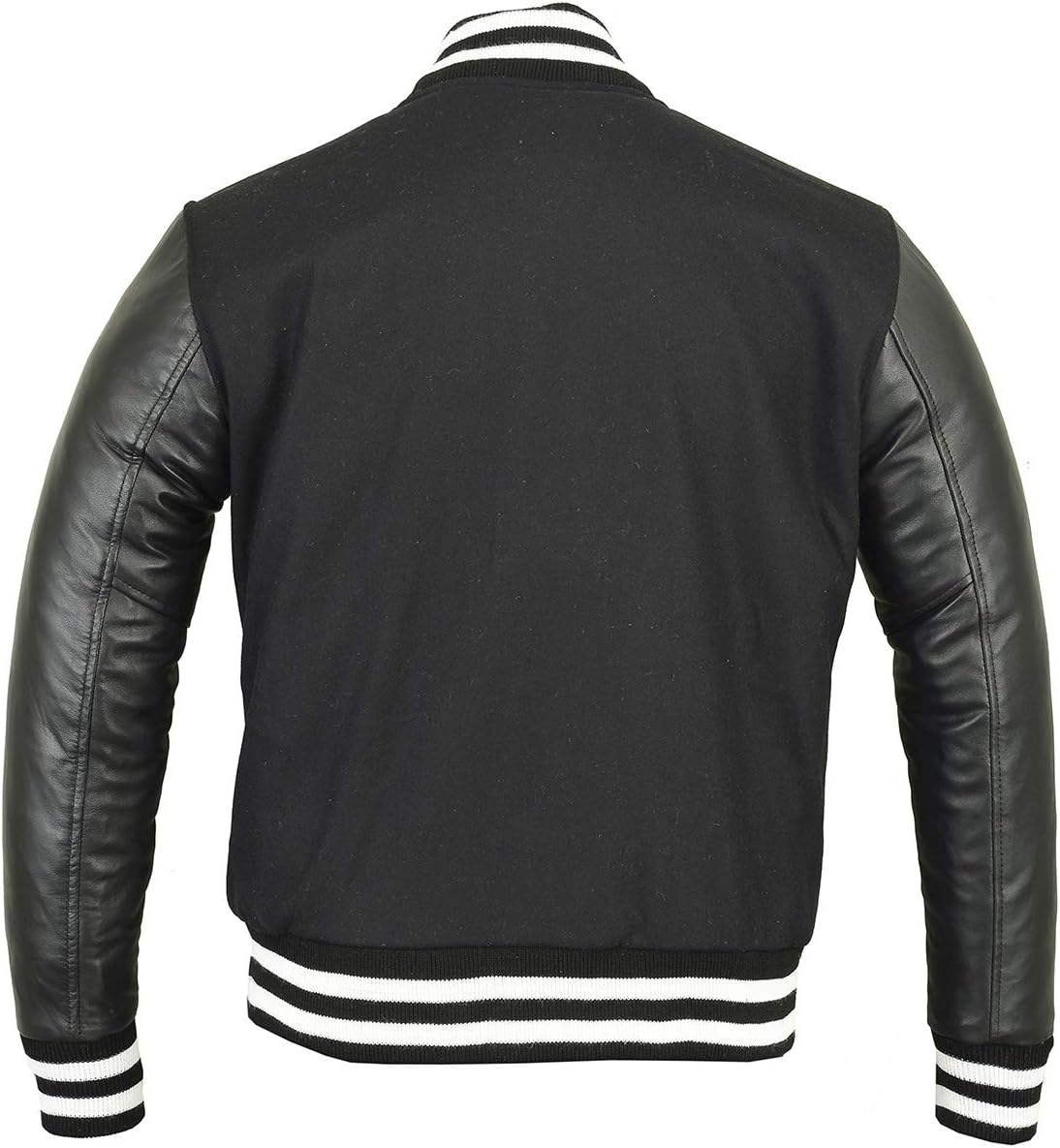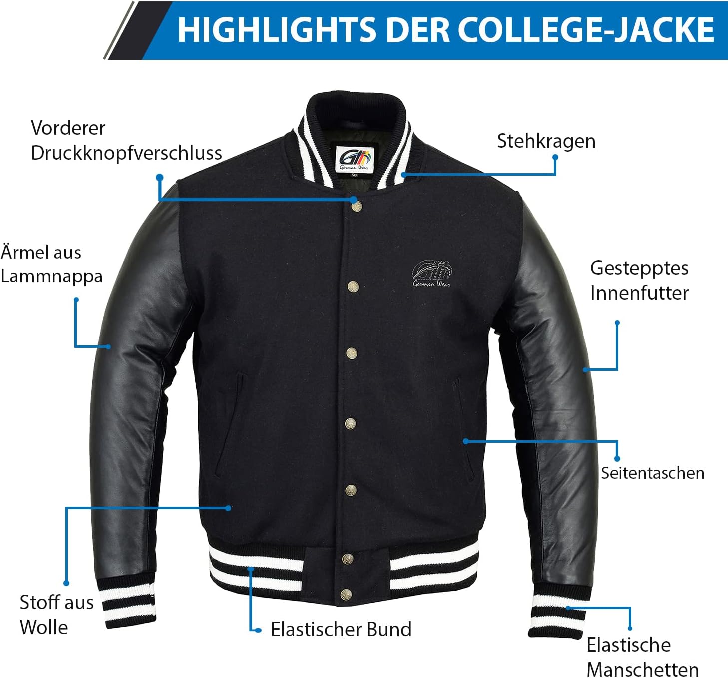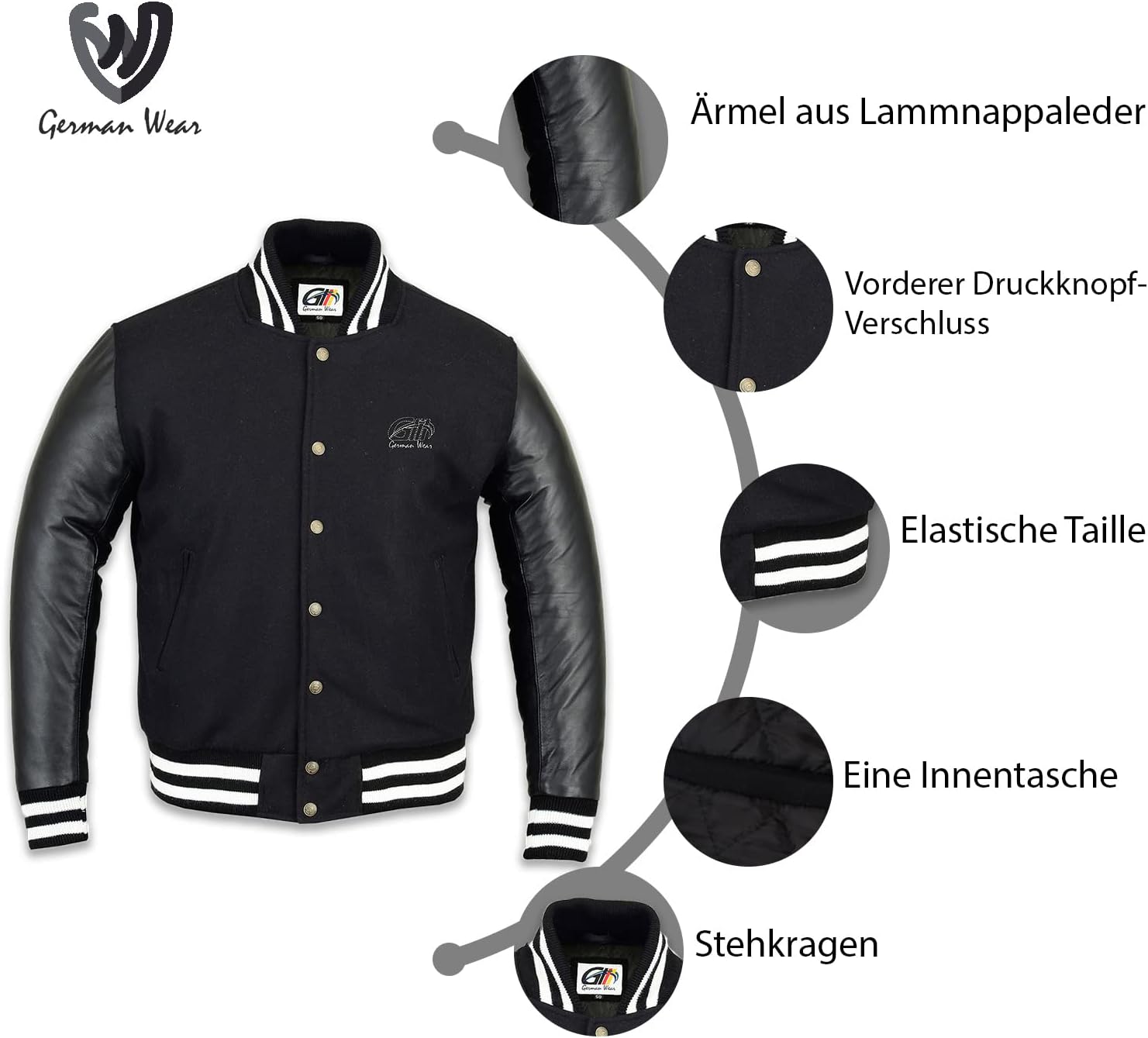German Wear Premium Leather College Jacket – Vintage Varsity Biker Style with Wool Blouson & Leather Sleeves, Polyester Retro Design for Autumn and Winter