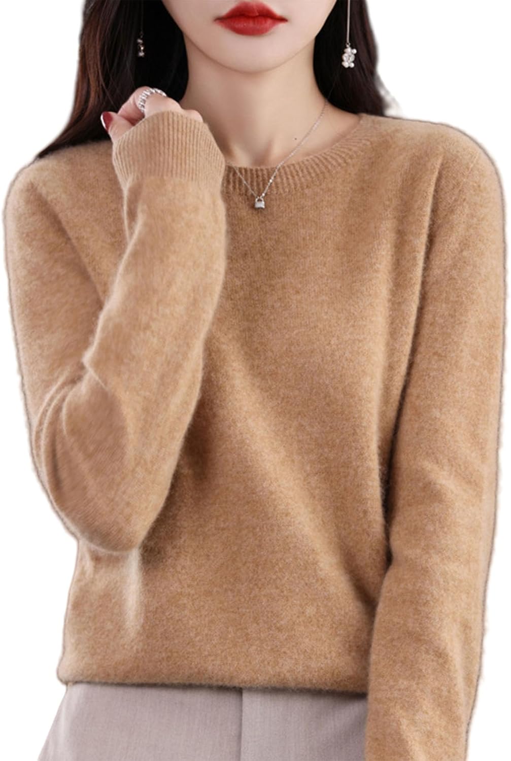 Jeeeun Cashmere Sweaters for Women, Women’s Cashmere Sweater, Cashmere Crew Neck Long Sleeve Soft Pullover Sweater