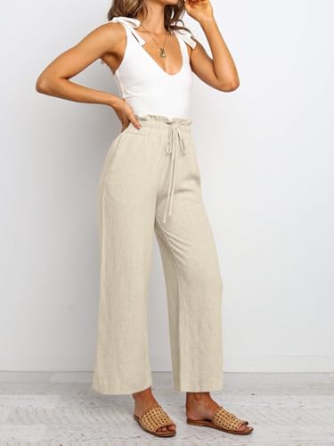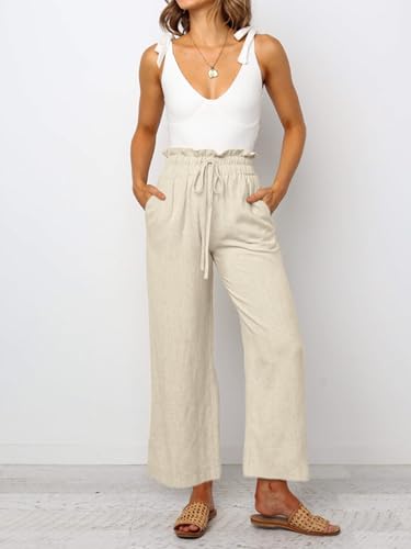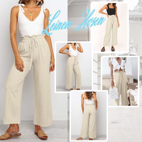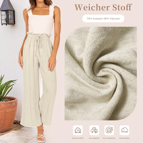 Leinenhose Damen Hosen Sommer Casual Leichte Palazzo Hohe Taille Einfarbig Leinen Freizeithose Sommerhose Mit Taschen und Tunnelzug