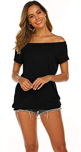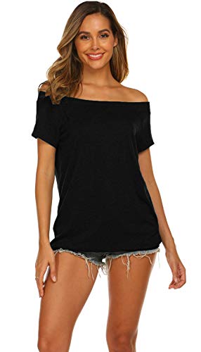 Lalala Tshirt Damen Sommer Schulterfreies Oberteil Lässige Langarm/Kurzarm Bluse Shirts