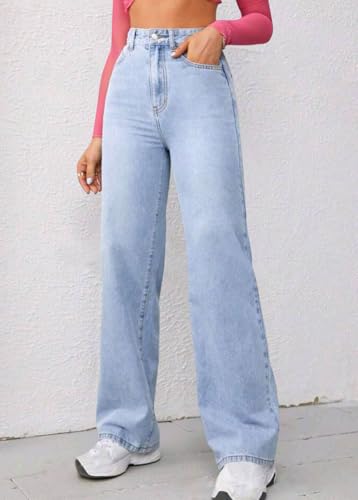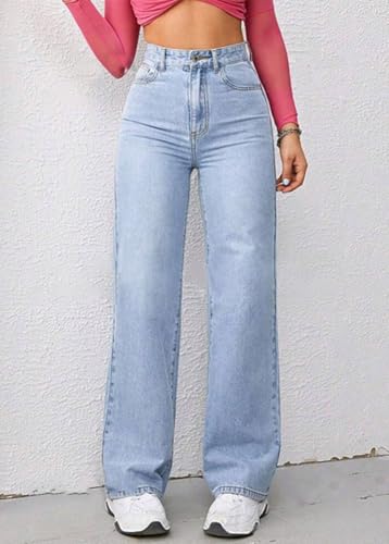 Baggy Jeans Damen High Waist Jeanshosen Weites Bein Jeans Stretch Straight Jeans Hosen Casual Lose Damenhose Freizeithose Wide Leg Denim Pants