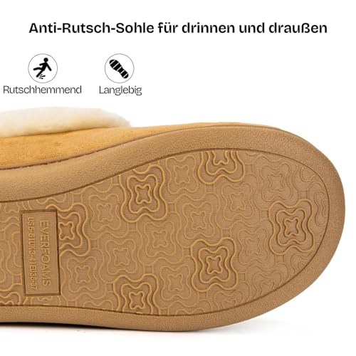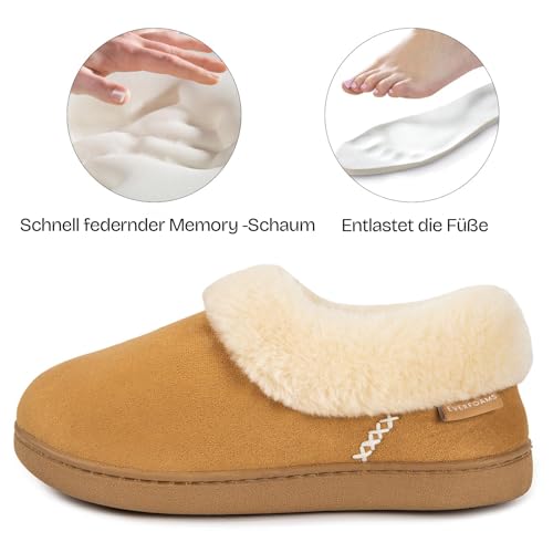 Damen Geschlossener Rücken Hausschuhe Microsuede Flauschig Warm Kunstfell Memoryschaum Innen Außen Pantoffeln