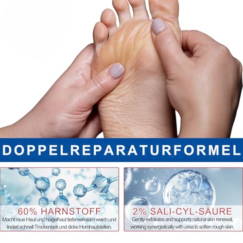 【Therapeutische Wirkung bei rissiger Haut】Speziell entwickelt als fusscreme sehr trockene füsse mit urea creme 60 prozent für therapeutische Pflege Bei regelmäßiger Anwendung der fußpflege werden selbst tiefe Risse und Schrunden effektiv behandelt und nachhaltig vorgebeugt