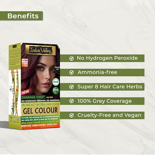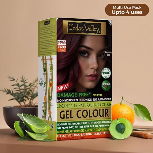 Indus Valley Natural Organic Damage Free Gel Hair Color | Ammonia Free, Vegan & Cruelty Free | Up to 100% Gray Coverage, Long Lasting Results |Burgundy (20gram+200ml)
