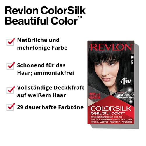 Revlon Permanente Haarfarbe, Permanentes Haarfärbemittel, Colorsilk mit 100 % Grauabdeckung, Ammoniakfrei, Keratin und Aminosäuren, 54 Helles Goldbraun