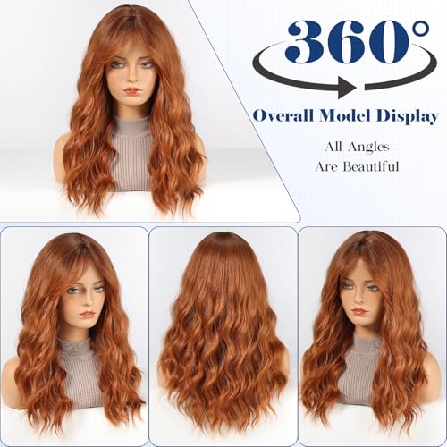 【Hochwertige Materialien】: Diese lange wellige, Auburn Perücke besteht aus hitzebeständigen synthetischen Fasern. Die Haarwurzeln sind sorgfältig handgefertigt, was ein natürliches, dichtes und voluminöses Aussehen verleiht. Sie fühlt sich weich an und Sie müssen sich keine Sorgen über Verwicklungen oder Haarausfall machen, sie lässt sich leicht durchkämmen.