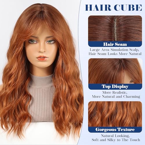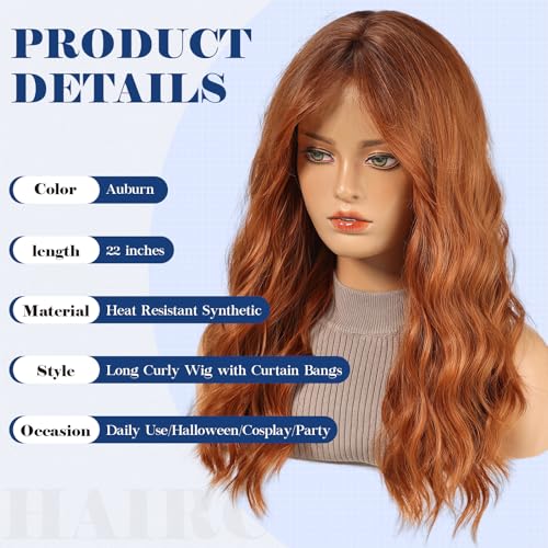 HAIRCUBE Damen Perücke,Auburn Perücke Lange Lockige Mit Pony Für Frauen,Natürliche Synthetische Haare,22 Zoll, Geeignet Für Halloween/Partys/Alltägliches Tragen.(Auburn)