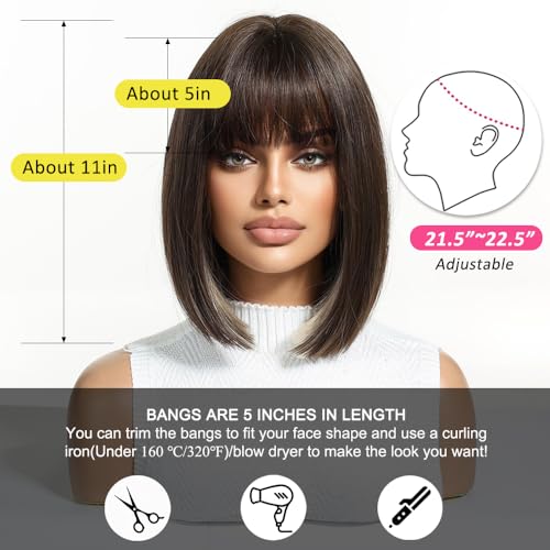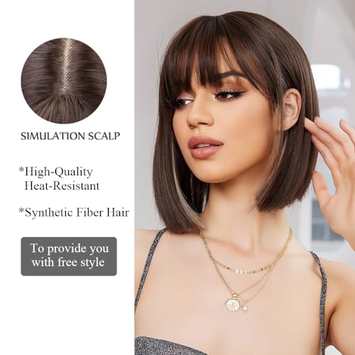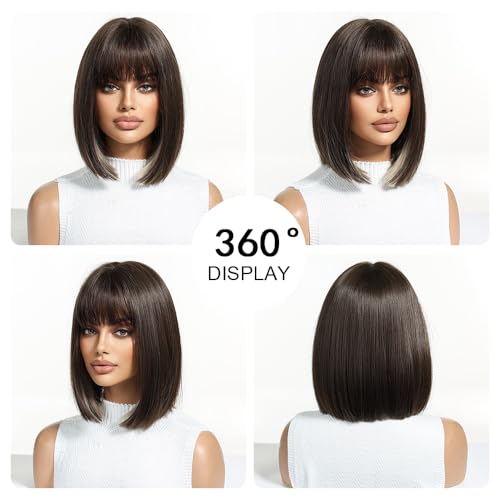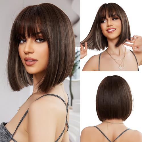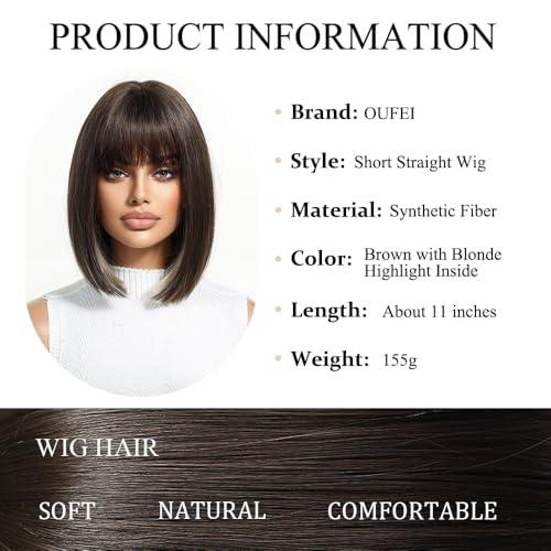 OUFEI Braune Bob Perücke Kurze Gerade Perücke für Frauen Synthetisches Haar Perücken Cosplay Tägliche Party Verwendung