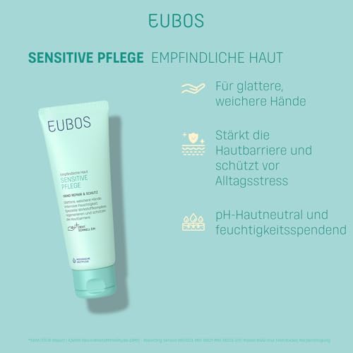 Eubos | Hand Repair & Schutz | Handcreme für trockene, rissige Hände | 75ml | Die besondere Aktiv-Formel für gepflegte Hände aus der EUBOS-Forschung mit 4-fach-Wirkung: regeneriert, feuchtigkeitsspendend, strafft und schützt