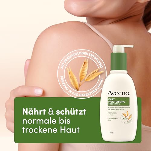 Aveeno Daily Moisturising Bodylotion – spendet 48h Feuchtigkeit, schützt vor Feuchtigkeitsverlust, stärkt die Hautschutzbarriere und pflegt normale bis trockene, empfindliche Haut,300ml
