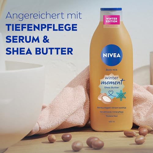NIVEA Body Milk Winter Moment, Body Lotion mit Tiefenpflege Serum für 72h Feuchtigkeit, Körperlotion mit Sheabutter für trockene Haut, mit einzigartigem Winterduft (400 ml)