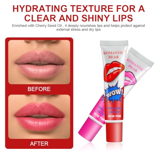 LANGANHALTEND: Die Textur ist fein, erfrischend und nicht klebrig, der Lippenstift ist wasserfest und abreißbar und die Textur des Lipglosses ist seidig und weich. Ziehen Sie einfach Ihr Lippentattoo ab, um einen natürlich aussehenden Ton zu erhalten, der den ganzen Tag anhält. Sie können essen, trinken und küssen, und die Farbe bleibt auf Ihren Lippen und verleiht Ihrem Look einen interessanten Look.