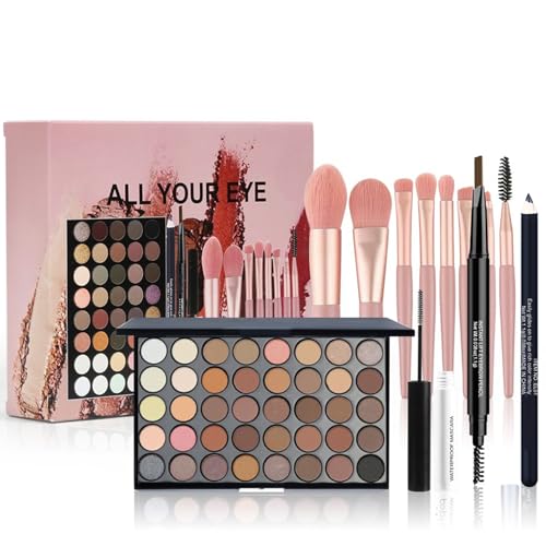All-in-One Make Up Set, Schminkset für Augen, Geschenkset mit 40 Farben Lidschatten Palette Eyeliner Augenbrauenstift Mascara Pinsel, Valentinstag Kosmetik Schmink Kit, Schminkkoffer für Anfängerinnen