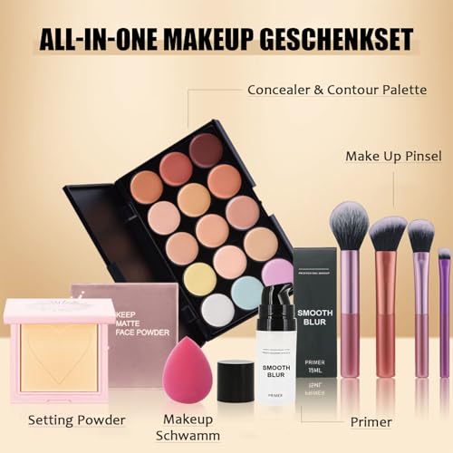 All-in-One Makeup Geschenkset, Kosmetik Schmink Kit Gesicht, Hochwertige Make Up Set für Valentinstag, Schminkkoffer mit Concealer Palette, Contour, Primer, Setting Powder, Schminkset Mädchen Frauen