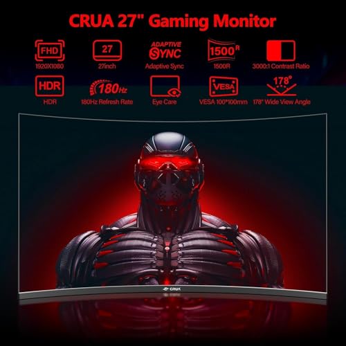Be the first to review “CRUA 27 Zoll Curved Gaming Monitor 165Hz/ 180Hz, PC Bildschirm Full HD 1080P, Rahmenloses 1800R Computerbildschirm mit FreeSync und Eye Care Technologie, unterstützt VESA”