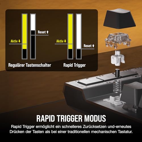 Anpassbare magnetisch-mechanische Schalter: Die gesamte Tastatur ist mit umfassend anpassbaren CORSAIR MGX-Schaltern ausgestattet, mit denen Sie den Betätigungspunkt jeder Taste von leichten 0,4 mm bis zu starken 3,6 mm in 0,1-mm-Schritten einstellen können, sodass Sie die Kontrolle haben, ob Sie schnelle Tastendrücke oder ultrapräzises Tippen bevorzugen.