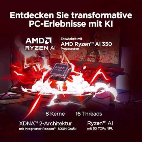 INTELLIGENZ, DIE LEISTUNG NEU DEFINIERT: Mit dem AMD Ryzen AI 7 Prozessor erleben Sie Gaming und Multitasking auf einem neuen Niveau: Künstliche Intelligenz optimiert Leistung, Effizienz und Reaktionsgeschwindigkeit in Echtzeit. Für ein smarteres, schnelleres und flüssigeres Erlebnis.