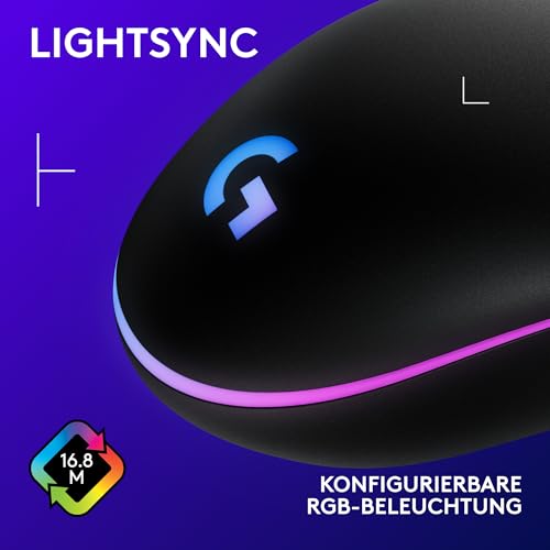 LIGHTSYNC RGB-Farben: Bringe Farbe ins Spiel mit unserem dynamischen LIGHTSYNC RGB mit Farbwelleneffekten, die du mit ~16,8 Million Farben anpassen kannst. Installiere die Logitech G HUB Software, um unter voreingestellten Farben und Animationen zu wählen, oder entwickle deine eigenen.