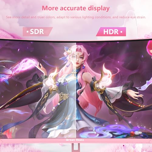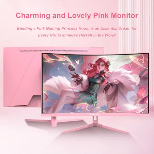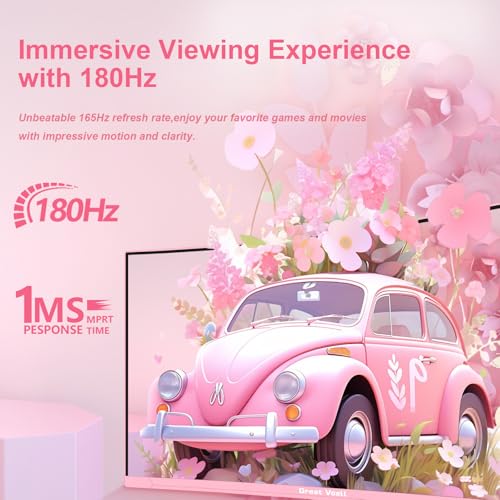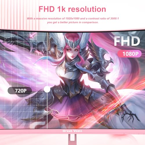 Great voell 27 Zoll Curved Gaming Monitor – 180Hz, FHD 1920 * 1080, 1500R Curved Bildschirm, 4000:1 Kontrast,VA Panel, 98% sRGB, HDR10, FreeSync, VESA 75×75 mm – Pink