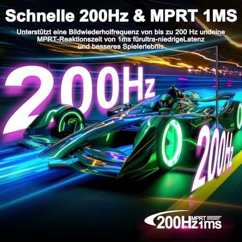 Hochauflösend & Schnell: Mit einer Auflösung von 1920×1080 und einer erstaunlichen Wiederabgabegeschwindigkeit von bis zu 200Hz, erleben Sie glatte Grafiken und schnelle Reaktionen in Ihren Spielen.