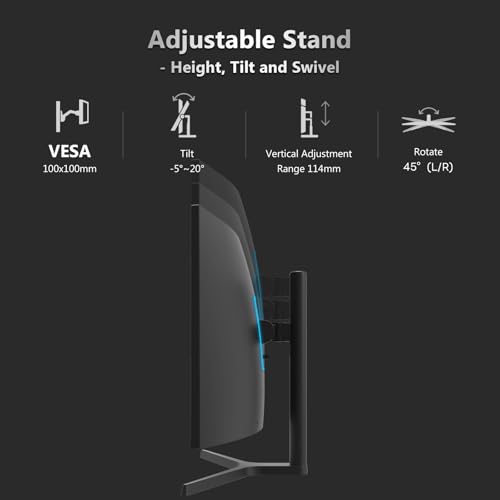 Flexibles Design: Die ultraschlanken Rahmen machen den Monitor nahezu rahmenlos, bietet ein breiteres Sichtfeld und besseres Mittendrin-Gefühl. Der Ständer ist höhenverstellbar, neigbar und drehbar, um Benutzerkomfort und optimale Sehbedingungen zu gewährleisten. Er ist auch VESA-kompatibel (100x100mm).
