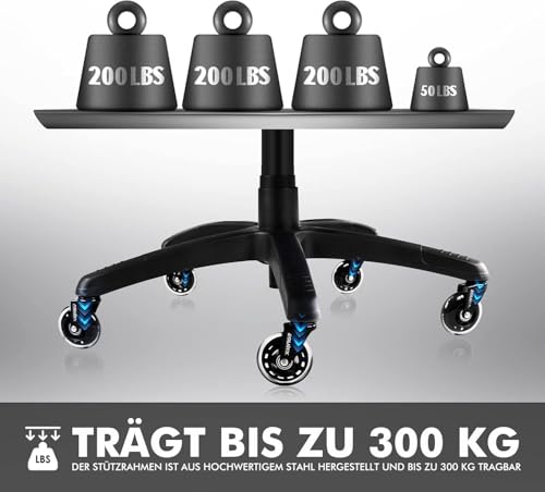 Verstellbarer Gaming-Stuhl: Die Rückenlehne lässt sich stufenlos bis 155° neigen – ideal zum Sitzen, Zurücklehnen oder Ausruhen. Die Klasse-4-Gasdruckfeder ermöglicht eine stabile und sichere Höhenverstellung. Hochwertige PU-Rollen sorgen für leises, leichtes Gleiten auf verschiedenen Böden und schützen dabei empfindliche Oberflächen