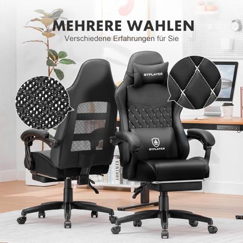 GTPLAYER Gaming Stuhl, Gaming Chair, Ergonomischer Höhenverstellbarer Bürostuhl, Zweckmäßig für Winter und Sommer, Doppelrückenlehne abnehmbare und Fußstütze Schwarz