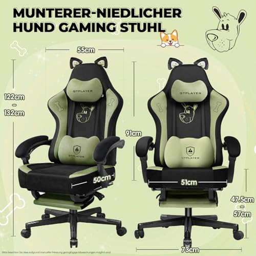 Be the first to review “GTPLAYER Niedlicher Gaming Stuhl mit Samtstoff, Gaming Chair, ergonomischer Bürostuhl Gamer Stuhl mit Katzenohren, Memory-Schaum und Fußstütze, 150kg, Grün”