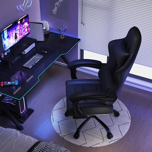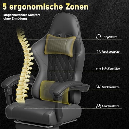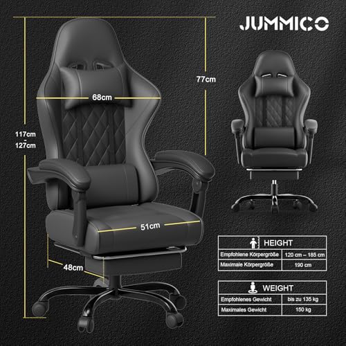 JUMMICO Gaming Stuhl, Schreibtischstuhl mit Massagefunktion,Bürostuhl Ergonomisch mit Fußstütze,150 kg, Schwarz