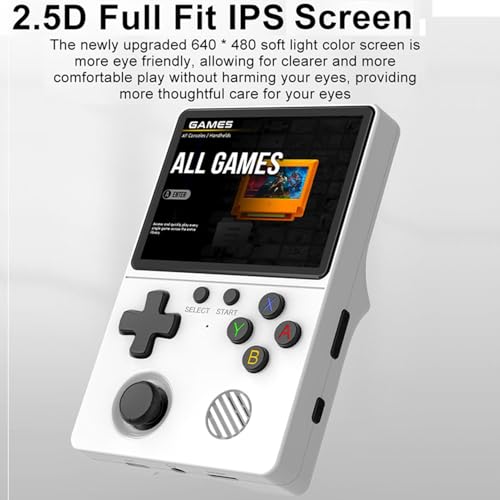 【3,5-Zoll-HD-IPS-Display mit Augenschutz】Das große 3,5-Zoll-IPS-Display (640×480) mit kratzfester Verglasung sorgt für lebendige Farben und klare Details. Die optimierte Farbtemperatur reduziert die Belastung der Augen – ideal für längere Spielsessions zu Hause oder unterwegs.