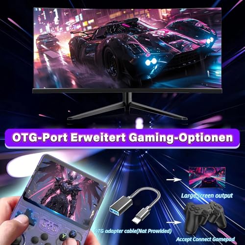 ARKOS Open Source Linux System & mit OTG-Anschluss ausgestattet: Diese Emulator Konsole verfügt über das ARKOS-Spielsystem auf Basis von Open Source Linux – offen, stabil und mit flexiblen Erweiterungsmöglichkeiten und personalisierten Einstellungen, um den anspruchsvollen Nutzungsanforderungen der Spieler gerecht zu werden. Außerdem hat sie einen OTG-Anschluss, über den Sie einen USB-Konverter anschließen können, um ganz einfach auf externes WLAN zuzugreifen (die Handheld-Konsole verfügt über kein integriertes WLAN) und eine Verbindung zu größeren Bildschirmen (z. B. Monitoren, Fernsehern) und Gamecontrollern. So kann sie an die Steuerungsgewohnheiten verschiedener Spieler angepasst werden