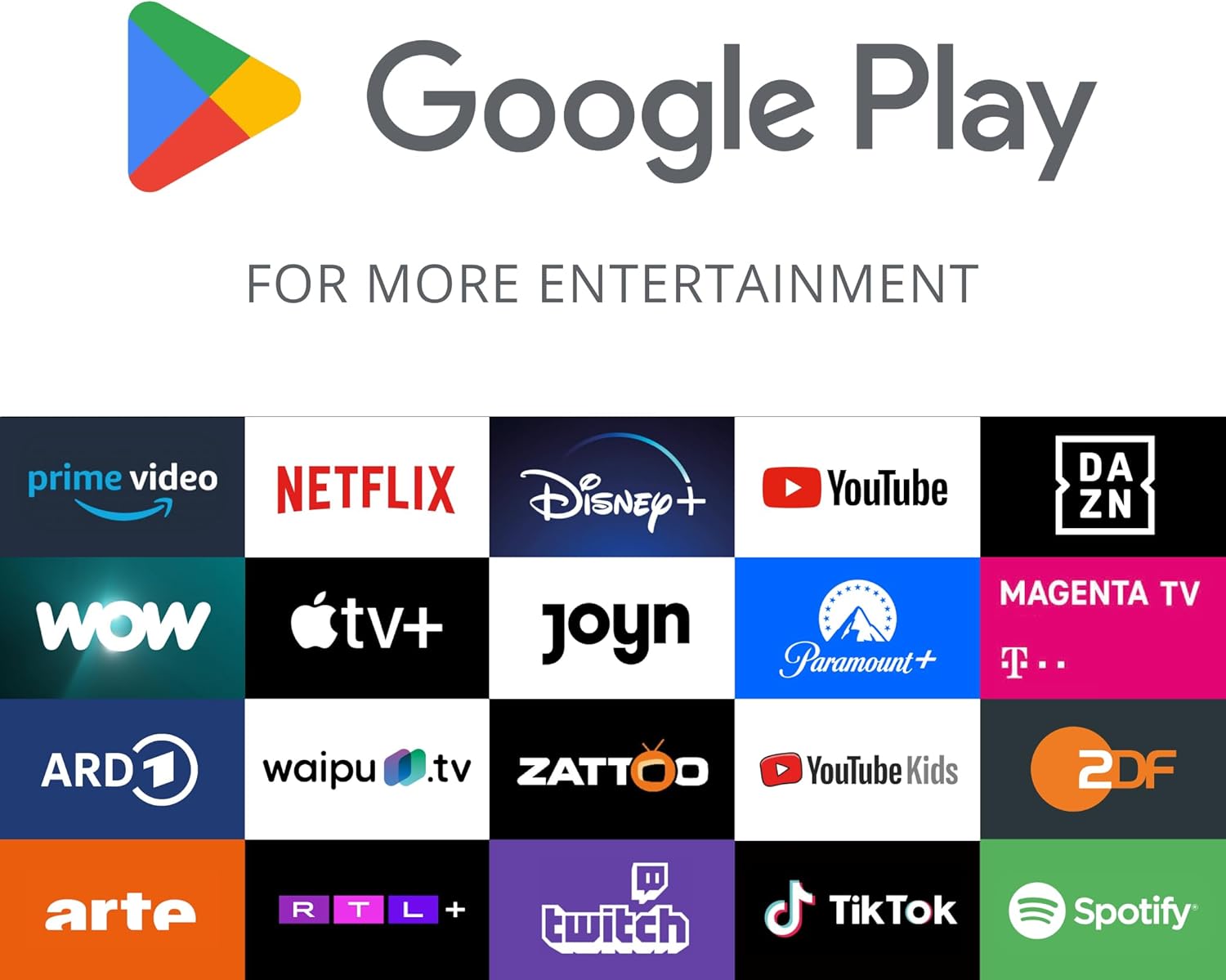 Smart TV with Google TV – Direct access to Netflix, Prime Video, YouTube, Disney+, DAZN and much more – install more apps easily from the Google Play Store.