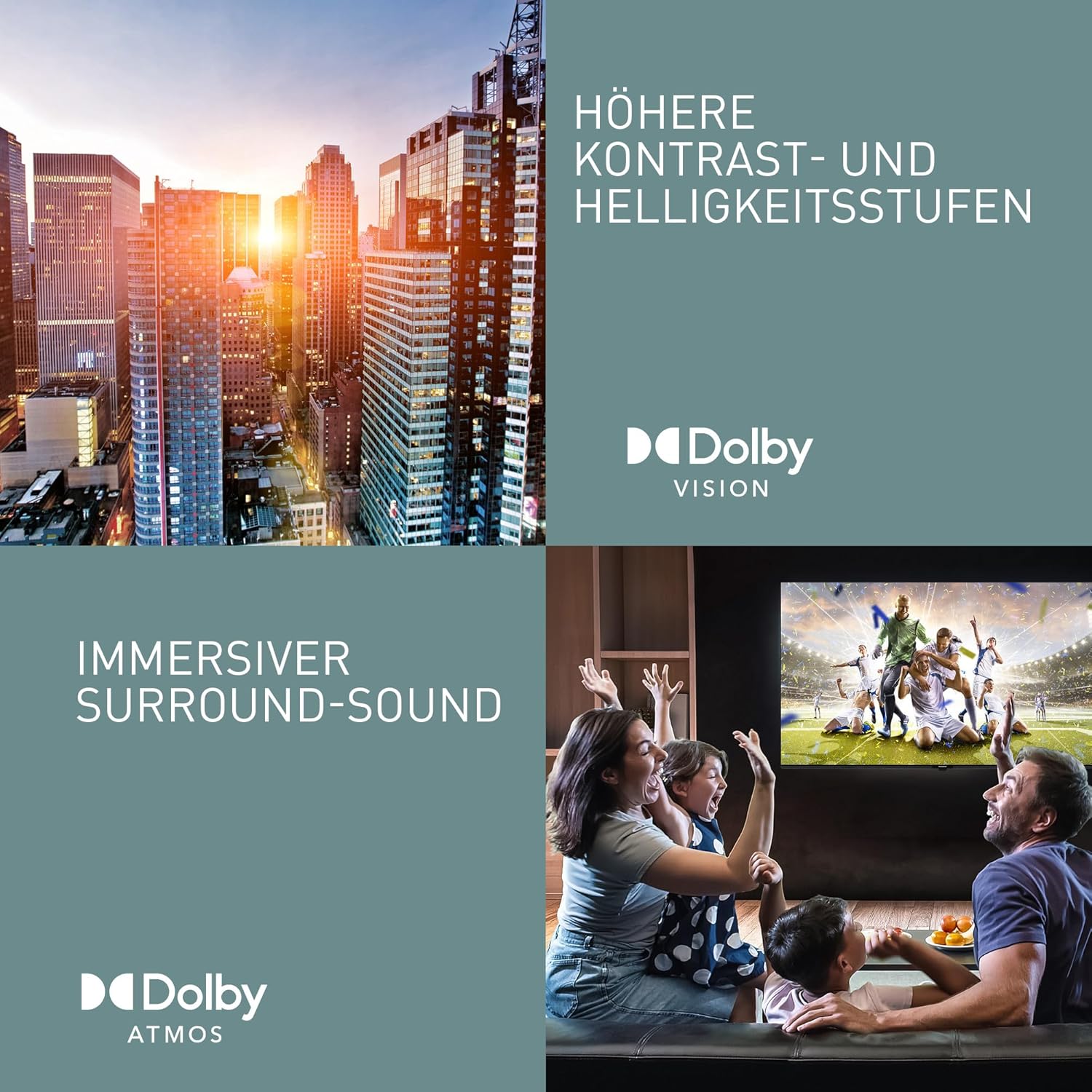 DOLBY VISION & MULTI HDR: Lebensechte Farben, tiefere Kontraste und spektakuläre Highlights mit Dolby Vision, HDR10 und HLG auf diesem 4K-LED-Fernseher