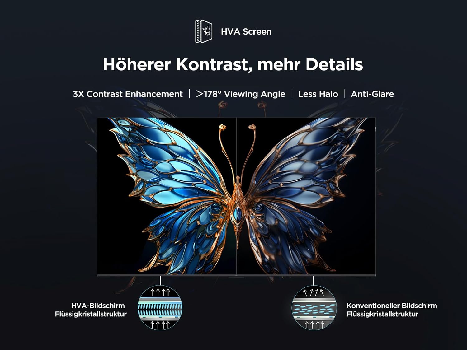 HVA Panel: HVA represents the next generation of VA panels. HVA panels offer high contrast, reduced power consumption and a wider viewing angle.