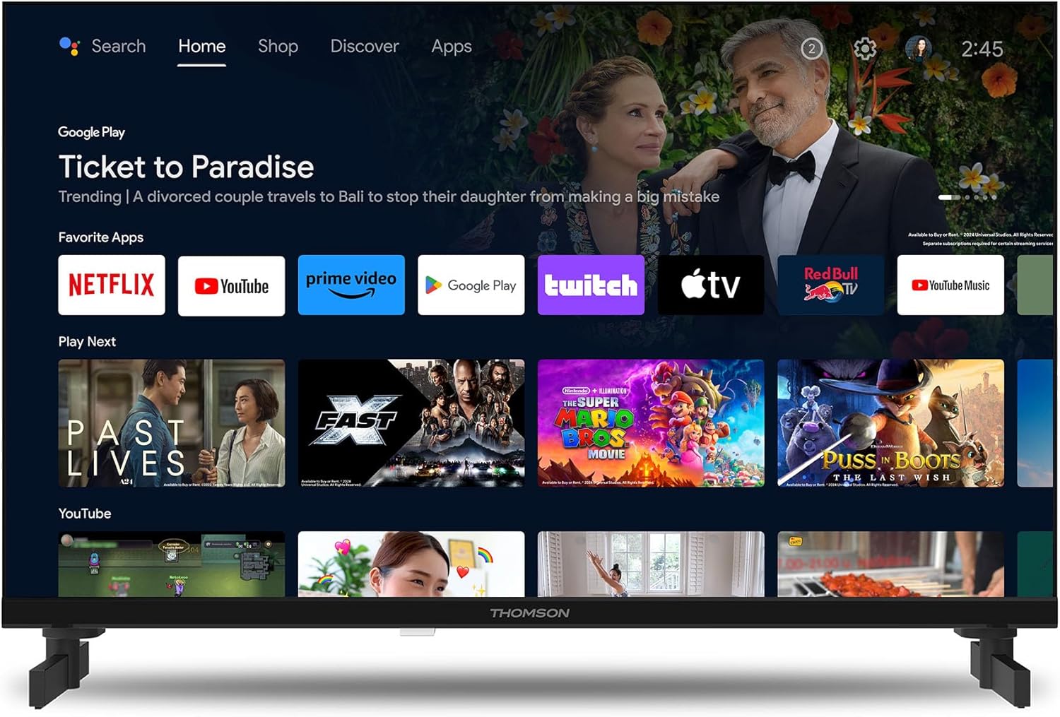 THOMSON 24 Inch (60 cm) LED HD 12 V Camping Smart Android TV, Google Assistant, Wi-Fi, Dolby Digital, Bluetooth, Triple Tuner (Cable/Satellite/Antenna), HDMI, CI Plus, A Plus Panel- 24HA2S13C