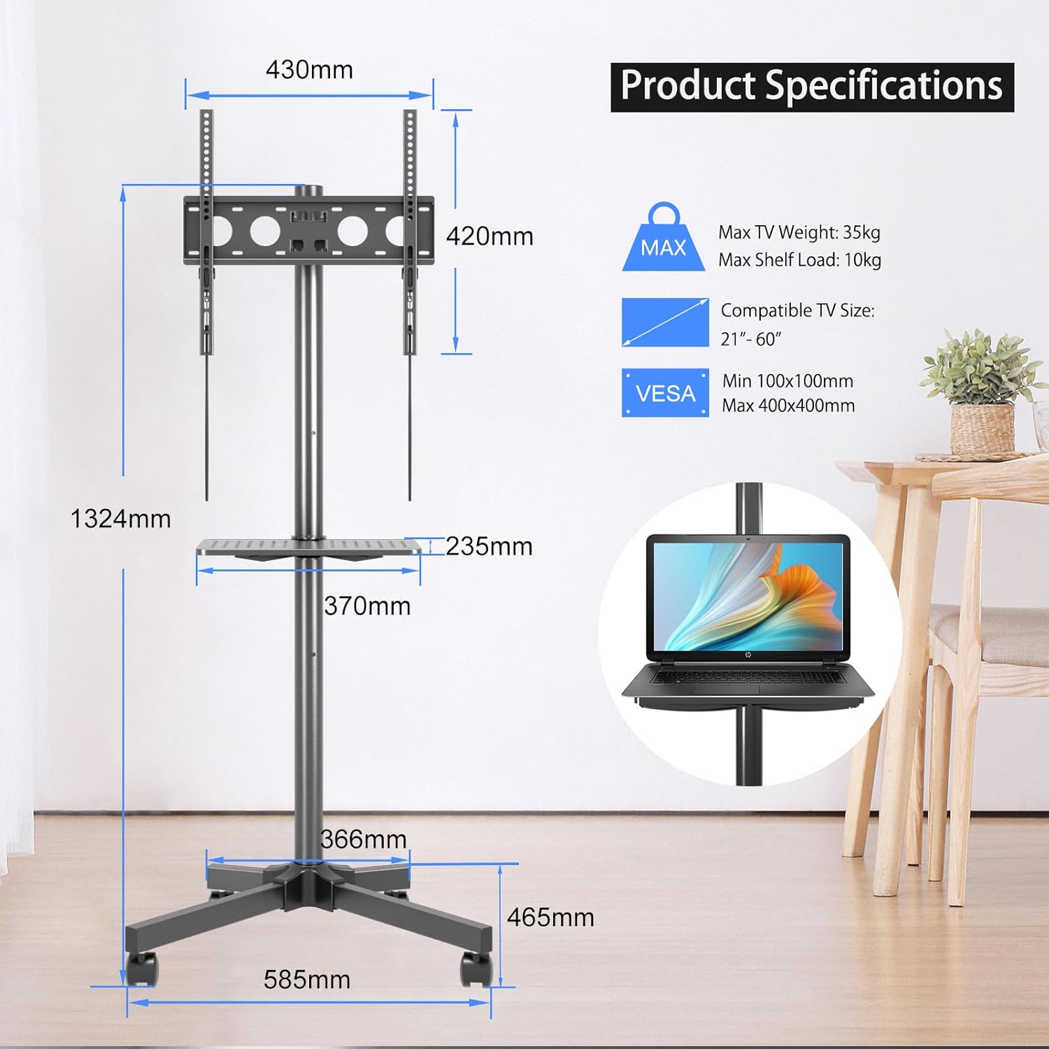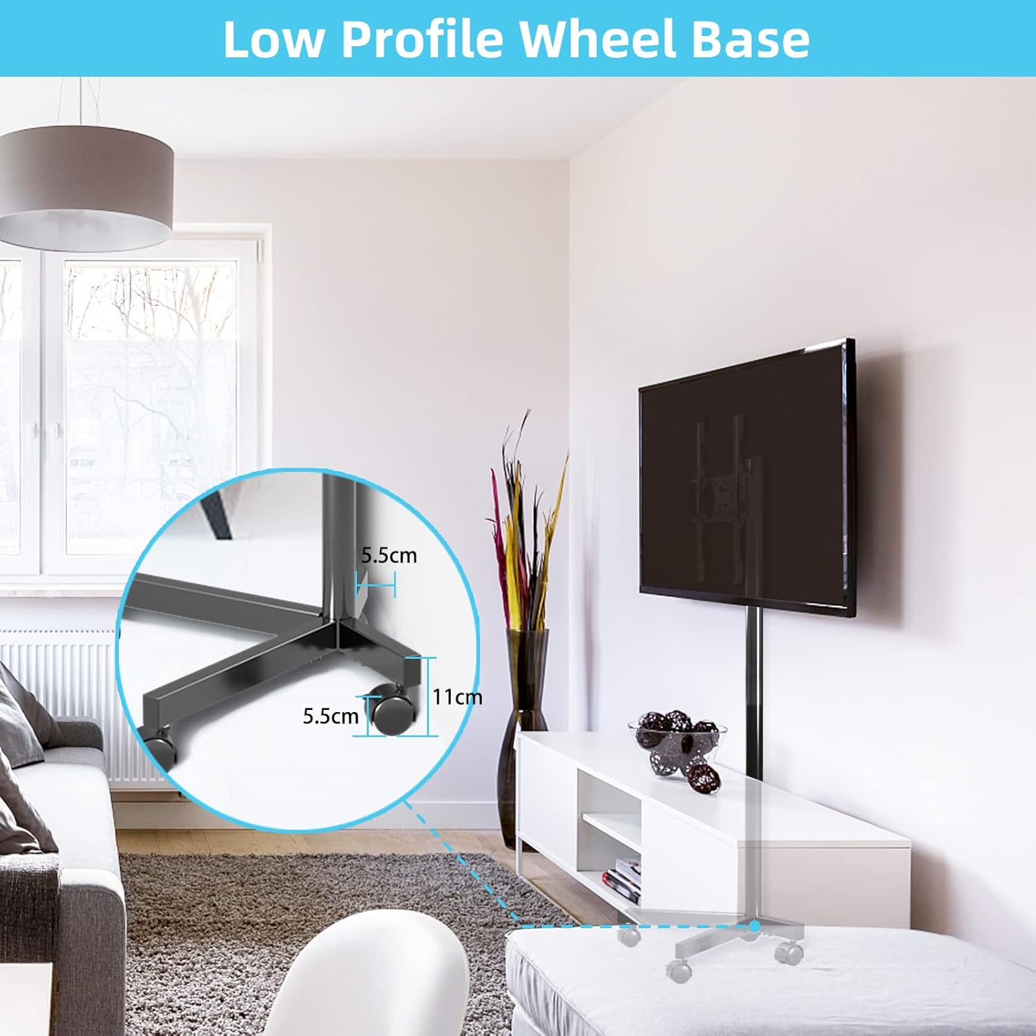 Universeller TV-Ständer rollbar für die meisten 21-60 Zoll flachen oder gebogenen Fernseher bis 35 kg mit VESA 100 x 100 bis 400 x 400 mm. Passend für die meisten Fernseher, die zu Hause und im Büro verwendet werden.