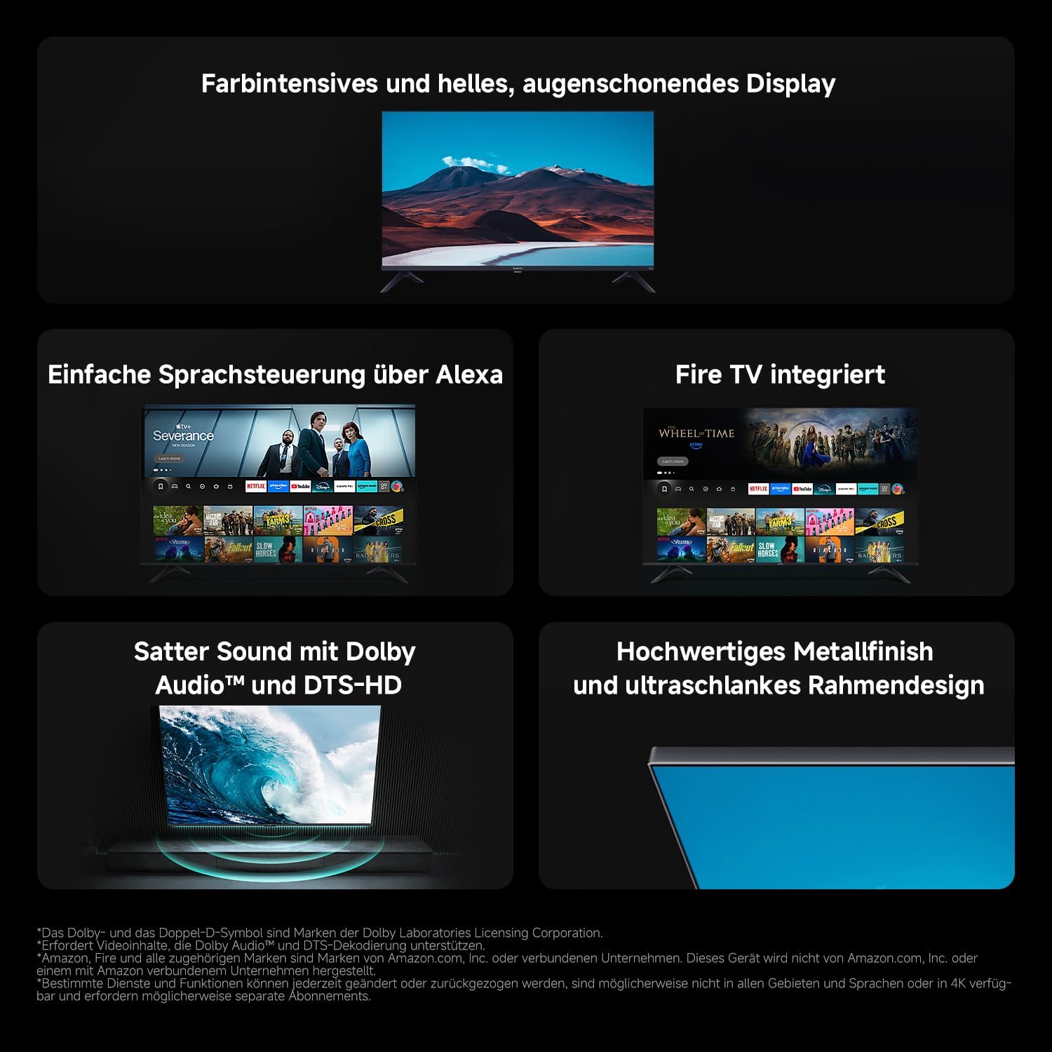 Xiaomi F 32″ HD Smart TV Fire TV Triple Tuner DVB-C/S/S2/T/T2, Dolby Audio, DTS Virtual:X, DTS-HD, Voice Control with Alexa, Compatible with Apple AirPlay