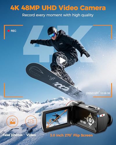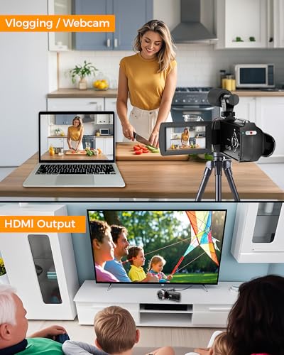 Euiivnt Videokamera 4K 48MP Camcorder, 3.0″ IPS Schermo Videocamera Digitale, 21X Zoom Digitale Vlogging Camera per YouTube, Video Camera Con HDMI-Kabel/Mikrofon / 2 Batterie/Scheda SD da 64 GB