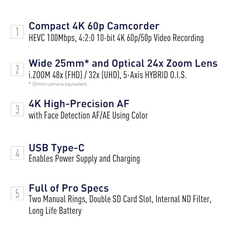4K/60p HOHE MOBILITÄT: Filmreife 4K/60p-Aufnahmen mit diesem leichten, kompakten Camcorder mit 25mm-Weitwinkelobjektiv, perfekt für Dreharbeiten, Events, Sport und Vlogging.