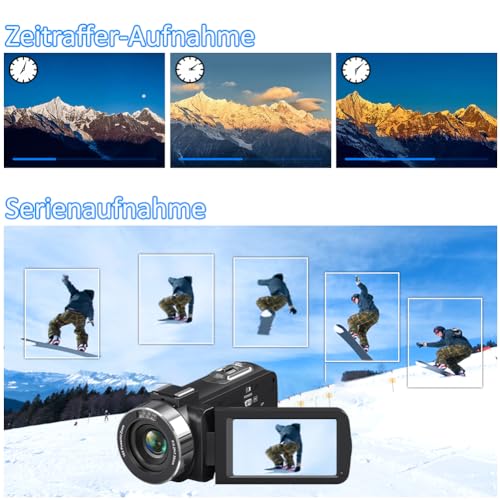 【4K & 48MP Videokamera】Mit der fortschrittlichen 4K Auflösung und 48 Megapixeln zeichnet sich diese Videokamera 4K durch hervorragende Video und Bildverarbeitung aus. Dank High Definition kann dieser Camcorder qualitativ hochwertige Bilder aufnehmen. Dank des 18-fachen Digitalzooms können Sie entfernte Landschaften problemlos heranzoomen. Diese Kamera eignet sich perfekt für Kursaufzeichnungen, Vlogging, Besprechungen, Video-Chats und mehr.