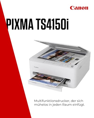 Kompakter Drucker: Canon PIXMA TS4150i ist ein sehr schneller Drucker mit kompaktem Design und nahtloser Smartphone-Konnektivität – der perfekte Allround-Drucker für zu Hause.