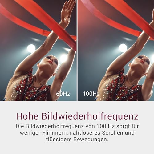 FLÜSSIGE DARSTELLUNG – Die Bildwiederholrate von 100Hz reduziert Flimmern und sorgt für nahtloses Scrollen und klare Bewegungsdarstellung – ideal für Arbeit und Alltag.