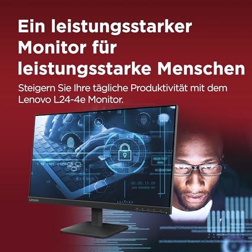 Lenovo L24-4e | 23.8″ Full HD WLED Monitor | 1920×1080 | 16:9 | 100 Hz | 4ms Reaktionszeit | IPS-Panel | HDMI | VGA Anschluss | Entspiegelt | Raven schwarz | 3 kg