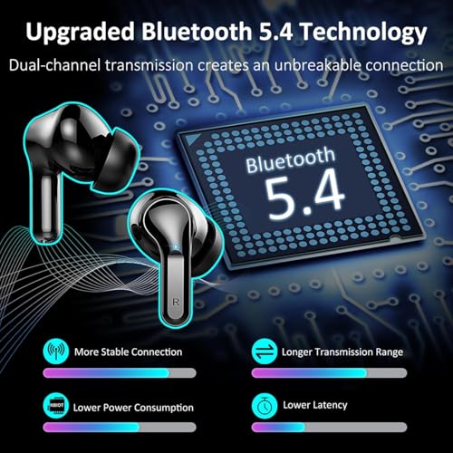 【Bluetooth 5.4, 0.1s ultra-niedriger Latenzzeit】Das kopfhörer kabellos Bluetooth verfügt über Bluetooth 5.4-Technologie und Zweikanalübertragung. Das kabellose kopfhörer bietet eine verbesserte Anti-Interferenz-Fähigkeit und einen optimierten Frequenzsprungmechanismus, der es effektiv vor externen Störungen schützt. Im Vergleich zu Bluetooth 5.3 erhöht sich die Übertragungsgeschwindigkeit um 100 %, die Stabilität um 70 % und der Stromverbrauch um 30 %. Gewährleistet die Synchronisierung von Audio und Wiedergabe für ein intensives Unterhaltungserlebnis.